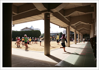 大きな砂場、広いホール、長い回廊、心落ち着く礼拝堂、友だちややさしい先生と共にある保育室。そこに光と風があふれています。子どもの心とからだの動きに沿ってこの施設は創られているのです。