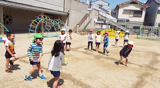 まこと幼稚園では、たとえば運動会開催の決定を下すことはもちろん 競技内容も園児自身が考えて練り上げ、完成させます。また、「とびだせこどもたち」と名付けた生活発表会では、 ストーリー、衣装、踊りなどを子どもたちで話し合い、 ゼロから自分たちで作り出していきます。